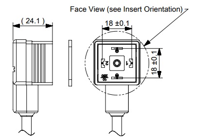 CONNETTORE PER EV FORMA "A" ,SERIE E152, 2 POLI + DOPPIA TERRA, CAVO 50CM PVC 3x0.75, GUARNIZIONE A PROFILO IN NBR + VITE DI FISSAGGIO